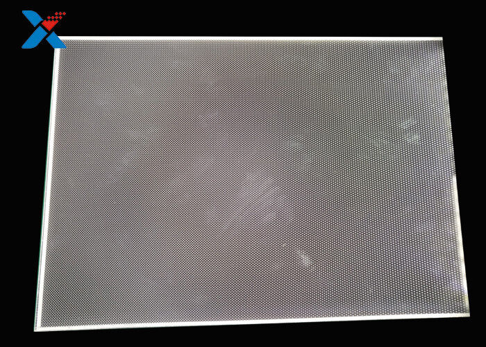 A placa de guia claro é feita do acrílico ótico da categoria, e usa então materiais da alto-tecnologia com R.I. extremamente alto e nenhuma absorção de luz. Imprimir a tecnologia imprime pontos do guia claro. A folha acrílica da ótico-categoria é usada para absorver a luz emissora da lâmpada e para ficar na superfície da folha acrílica da ótico-categoria. Quando a luz bate cada ponto do guia claro, a luz refletida espalhará a todos os ângulos, e destruirá as condições da reflexão e estará emitida então da frente da placa de guia claro. Através dos vários pontos do guia claro da densidade e do tamanho diferentes, a placa de guia claro pode ser feita para emitir-se uniformemente a luz. A finalidade da folha reflexiva é refletir a luz exposta na superfície inferior de novo na placa de guia claro para melhorar a eficiência do uso da luz; sob a condição da mesma área do brilho luminoso, a eficiência luminosa é alta e o consumo de potência é baixo. A placa de guia claro único-tomada partido da disposição da microestrutura adota geralmente o processo de manufatura de molde de extrusão.